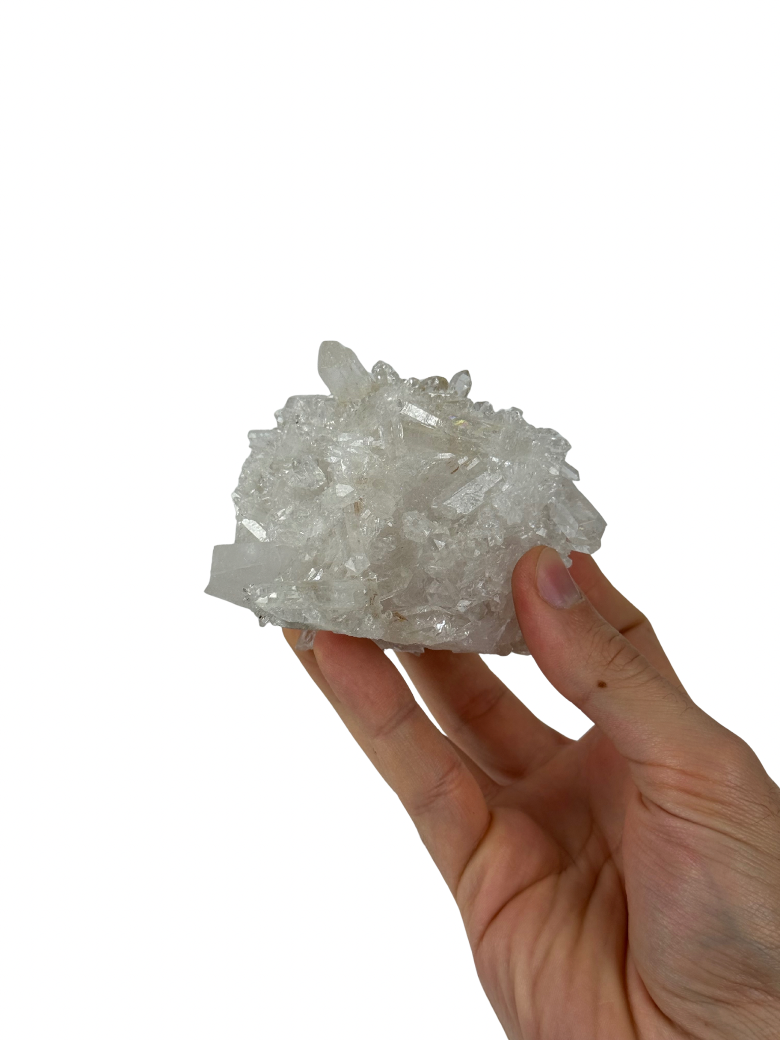 This high-quality clear quartz cluster from Brazil features well-defined natural crystal formations with excellent clarity and structure. The naturally formed points and balanced composition make it a standout specimen, suitable for both display and collection. Each cluster is unique, showcasing the natural variations that make Brazilian clear quartz so highly regarded.