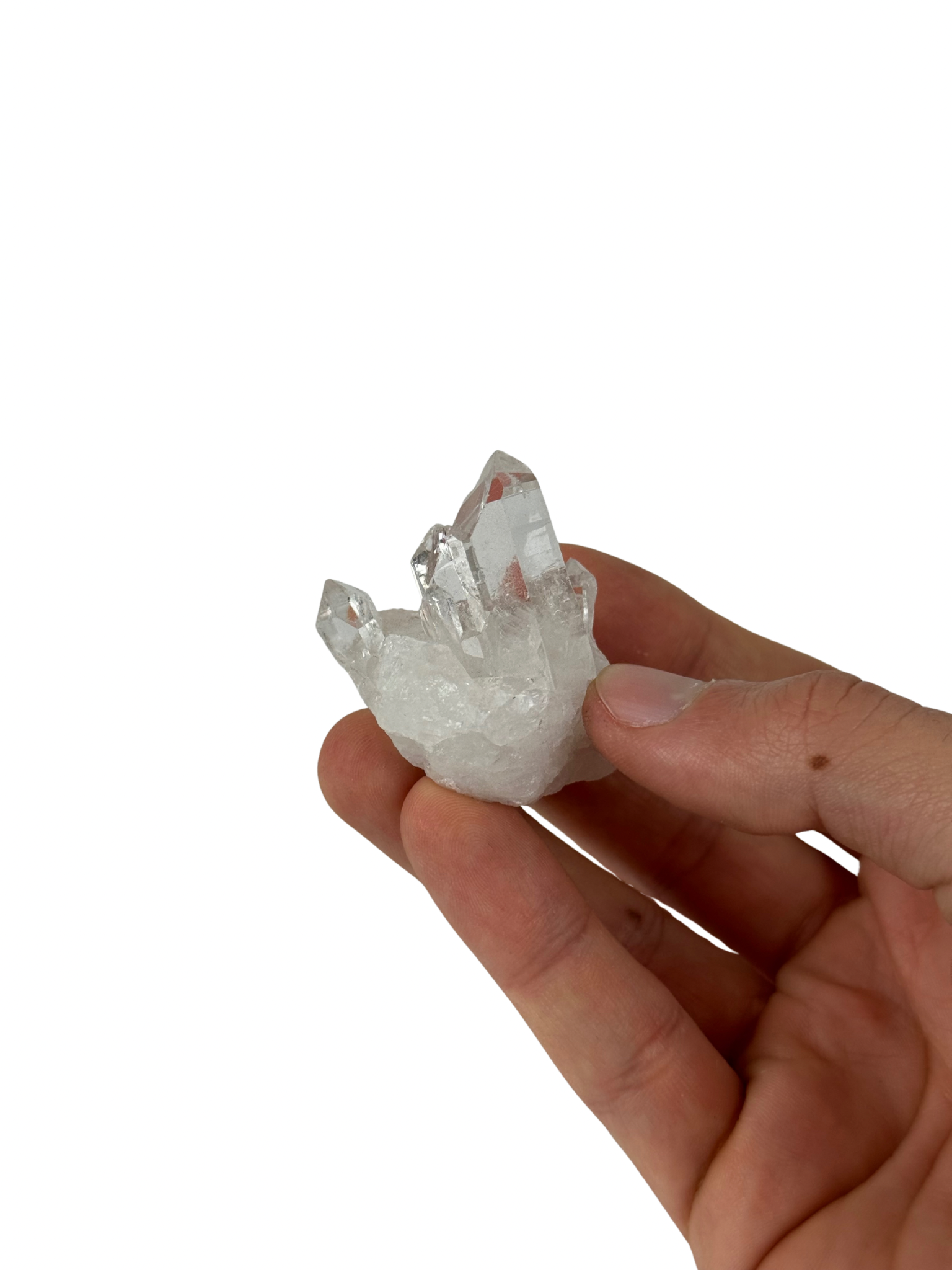 This high-quality clear quartz cluster from Brazil features well-defined natural crystal formations with excellent clarity and structure. The naturally formed points and balanced composition make it a standout specimen, suitable for both display and collection. Each cluster is unique, showcasing the natural variations that make Brazilian clear quartz so highly regarded.
