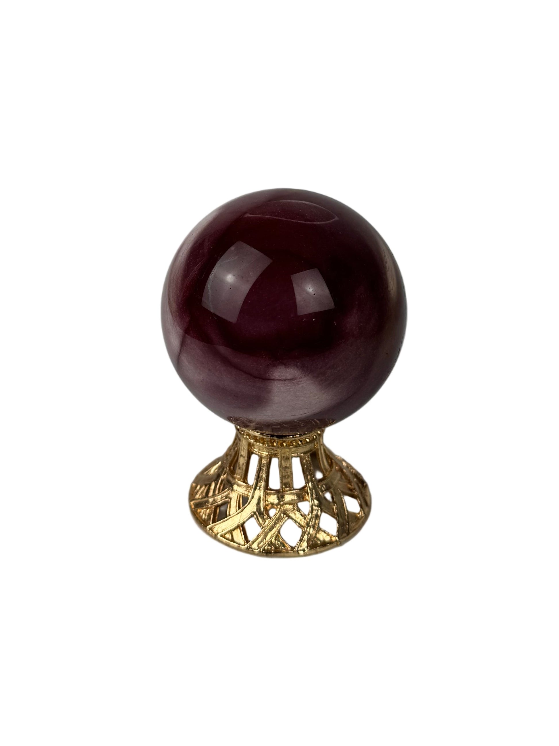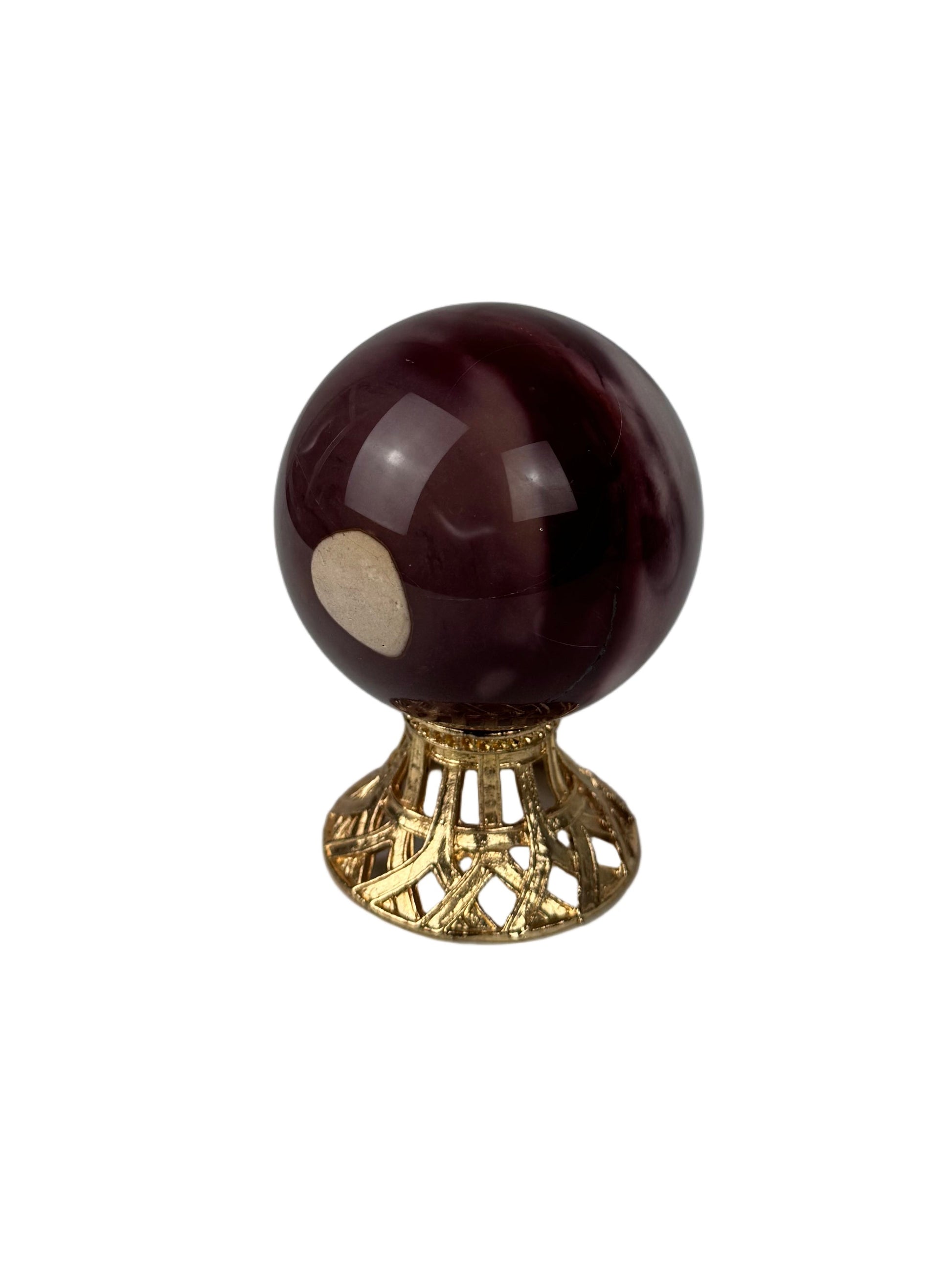 This Mookaite sphere from Australia showcases the natural beauty and intricate patterns characteristic of this unique jasper variety. Expertly polished to a smooth finish, each sphere reveals distinctive markings and variations that make every piece one of a kind. Its rounded form and natural lustre make it a striking addition to any mineral collection or decorative setting.